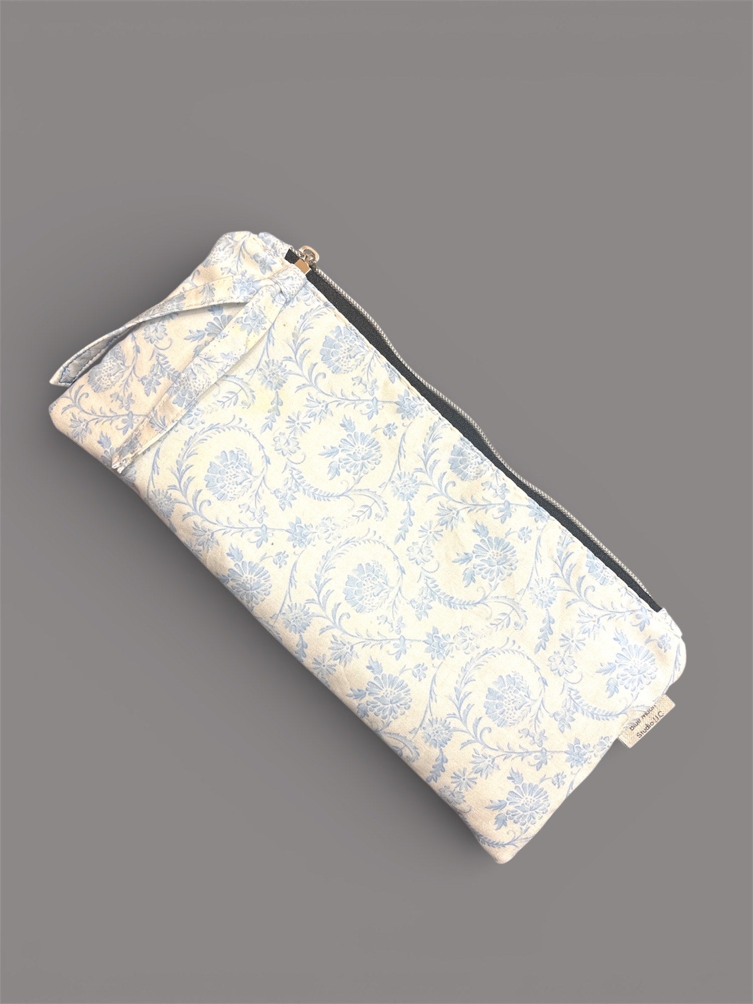 This handcrafted essentials bag solves the persistent challenge of portable organization through thoughtful design. The compact 11" x 5" x 1" footprint maximizes storage capacity while maintaining a profile slim enough to nest within larger bags, totes, or luggage systems. Constructed from soft fabric with a dependable zipper mechanism, it secures cosmetics, toiletries, brushes, and travel necessities against shifting during transit. The structured shape prevents contents from settling or becoming inaccessible, while lightweight construction facilitates frequent repositioning. Ideal for professionals managing multiple daily environments, travelers requiring modular packing systems, or anyone seeking durable, space-efficient organization that performs consistently across varied use cases.